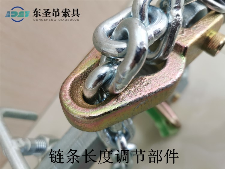 • 東圣吊鏈式吊夾夾具上的鏈條使用的是80級起重鏈條,表面為鍍鋅,可以更好的起到防銹的作用。80級起重鏈條抗拉力性強,硬度較高,并且有一定的韌性,耐磨。 東圣吊夾采用80級起重鏈條